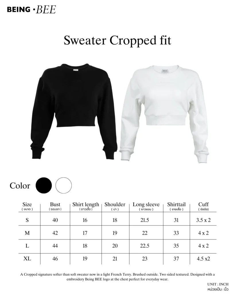 A Cropped signature softer than soft sweater now in a light French Terry. Brushed outside. Two sided textured. Designed with a embroidery Being BEE logo at the chest perfect for everyday wear.